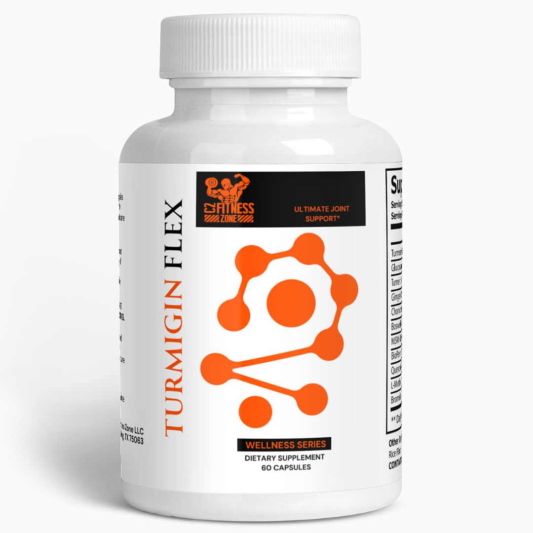 Introducing C2 Fitness Zone Turmigin Flex – a premium blend meticulously crafted to harness the full spectrum of turmeric's benefits, complemented by a powerful fusion of ingredients. Packed with Turmeric Root Powder, Glucosamine, Ginger Root Extract, Chondroitin Sulfate, Quercetin Dihydrate, and Bromelain, this supplement is a powerhouse designed to support joint health, inflammation response, and overall well-being.